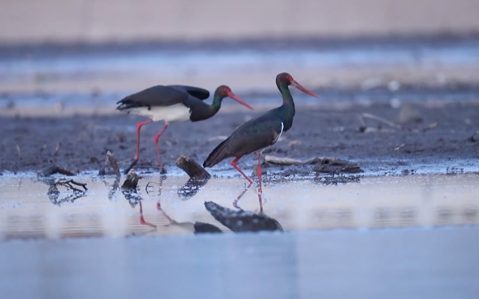 近日,一群被称为“鸟类大熊猫”的鹳鸟飞抵山西省阳泉市洮河下游白杨树湿地公园。大约 50 只鹳鸟在寻找食物、栖息、追逐、嬉戏,整理翅膀,展翅飞翔。其特有的长而红的喙和大尺寸尤其引人注目。